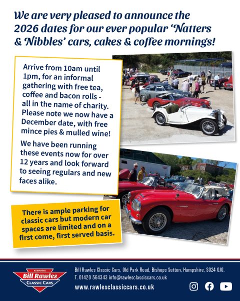 We are very pleased to announce the 2026 dates for our ever popular ‘Natters & Nibbles’, Cars, Cakes & Coffe ... Read More